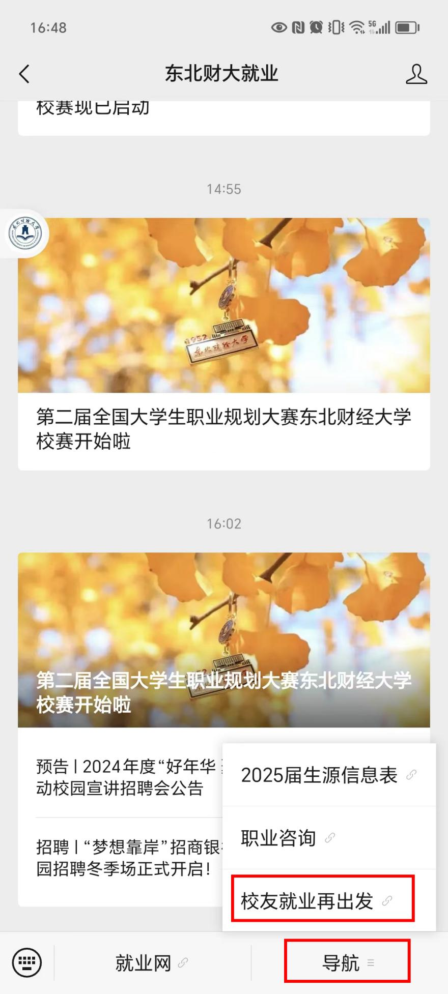 校友們可以訪問東北財經大學畢業生就業指導網(https://career.dufe.edu.cn)以及“東北財大就業”微信公眾號(ID:dufecareer),在“校友就業再出發”模塊查看招聘信息(無需登錄),根據招聘簡章要求投遞簡歷。