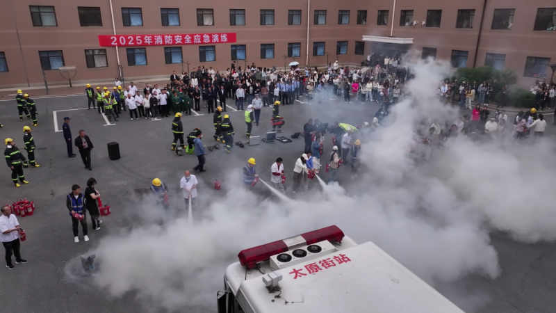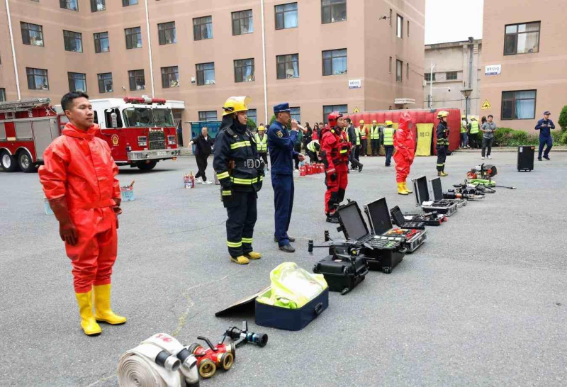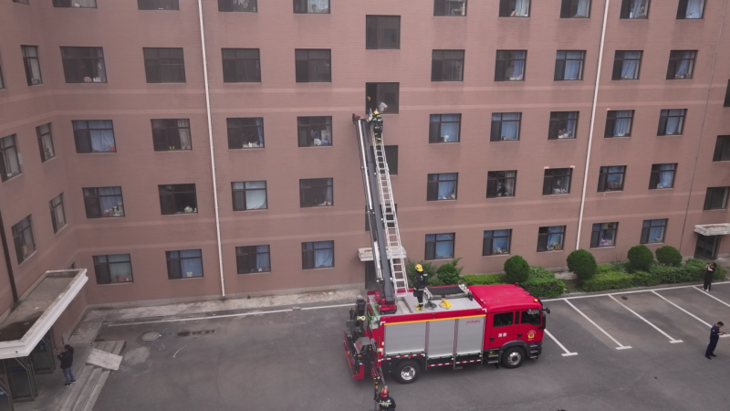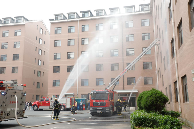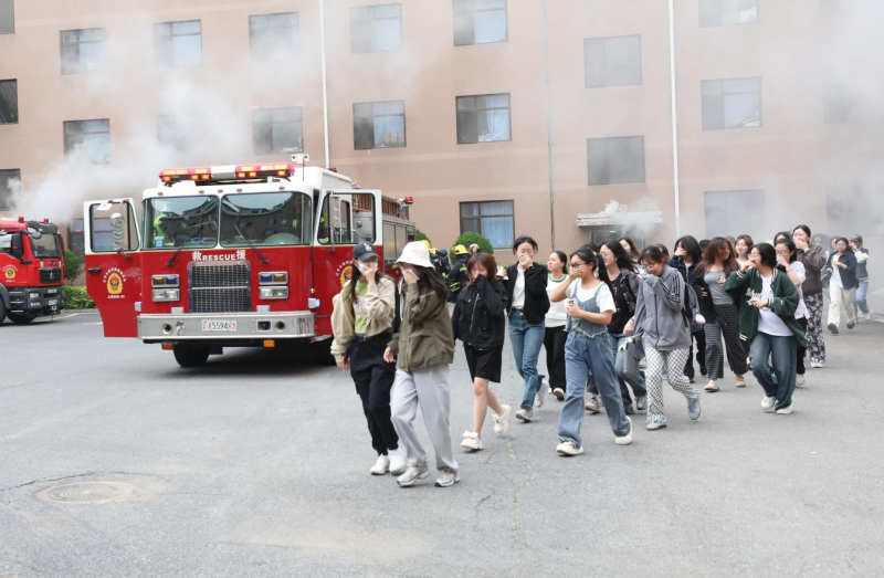 演練中模擬了知書園學生公寓某宿舍出現“火情”,并有學生被困場景。接到學生報警后,校內微型消防站義務消防隊隊員立即到達起火房間,使用滅火器對初期火情進行撲救。幾分鐘后,消防救援人員到達現場,采用云梯消防車、多功能搶險救援車等裝備進行滅火,“火情”被成功撲滅,被困學生也全部救出。醫療救護組對在“火情”中受傷的人員進行緊急救治。